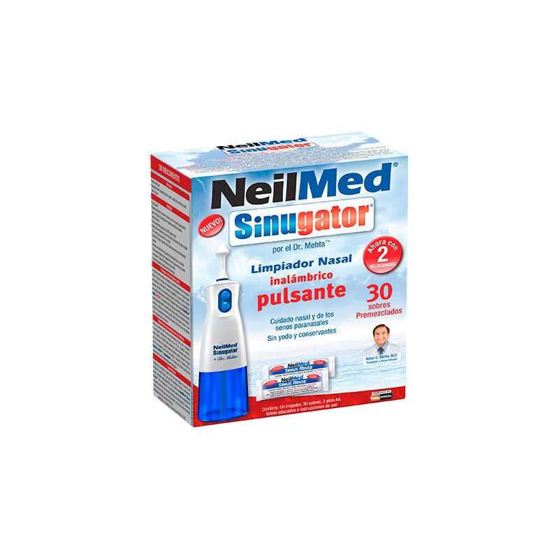 Por su seguridad, no utilice agua corriente para disolver la mezcla si no ha sido previamente hervida durante cinco minutos o más, ya que la ebullición esteriliza el agua. Otras opciones son agua destilada, microfiltrada (filtro de 0,2 micrones) ósmosis inversa o embotellada comercialmente. El dispositivo es para un solo usuario; no lo comparta con otras personas. Siga el protocolo de limpieza después de cada aplicación. Reemplace el dispositivo cada tres meses. Realice el enjuague nasal con suavidad Antes de usar este producto lea cuidadosamente las instrucciones y advertencias del folleto que viene en la caja, siempre encontrará información actualizada. Enjuagar sus conductos nasales sólo con agua regular le causará una sensación de ardor fuerte. Use agua tibia destilada, filtrada o previamente hervida, mezclada adecuadamente con los sobres de NeilMed Sinus Rinse. No se enjuague si los conductos nasales están completamente bloqueados o si tiene una infección de oídos tapados. Conserve el folleto que se incluye para instrucciones y otra información importante. Manténgalo fuera del alcance de los niños. Almacénelo en un lugar fresco y seco.